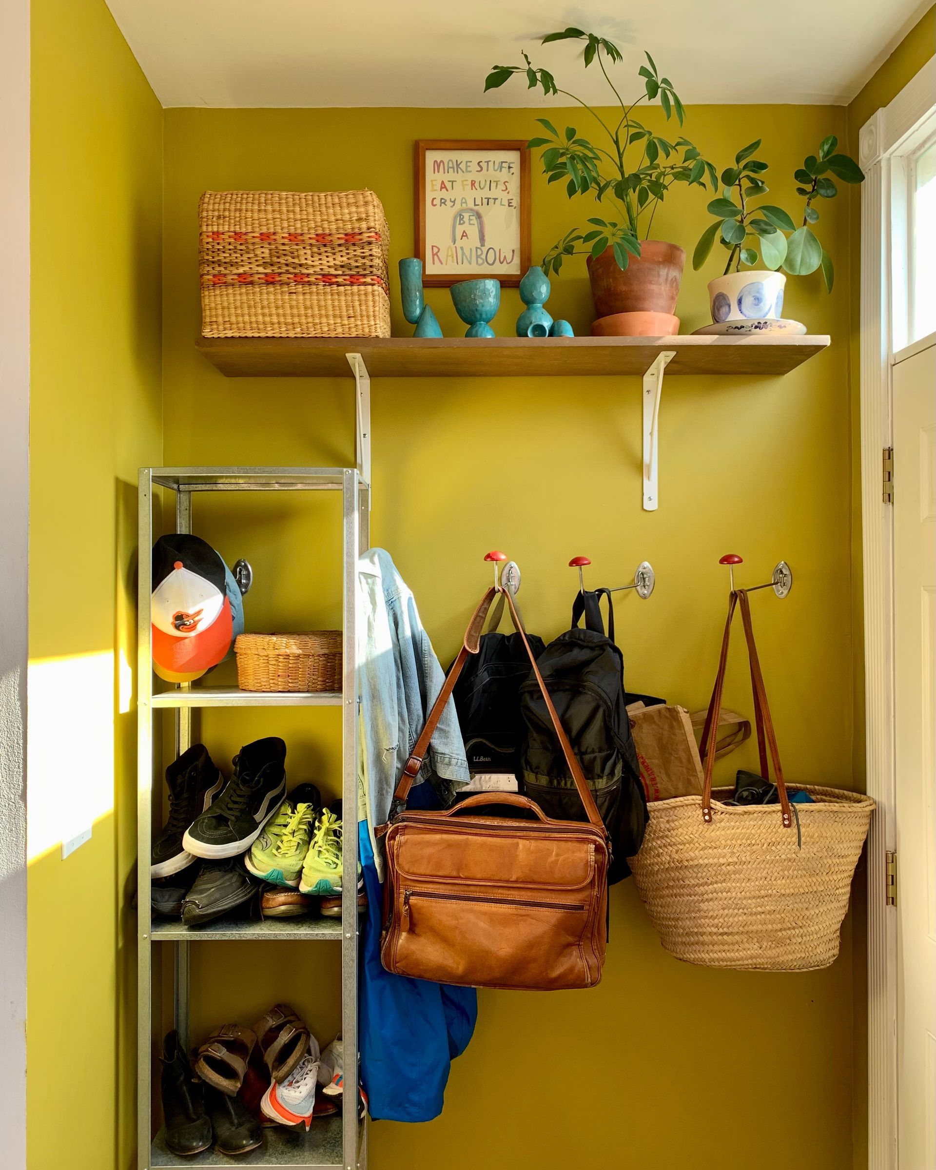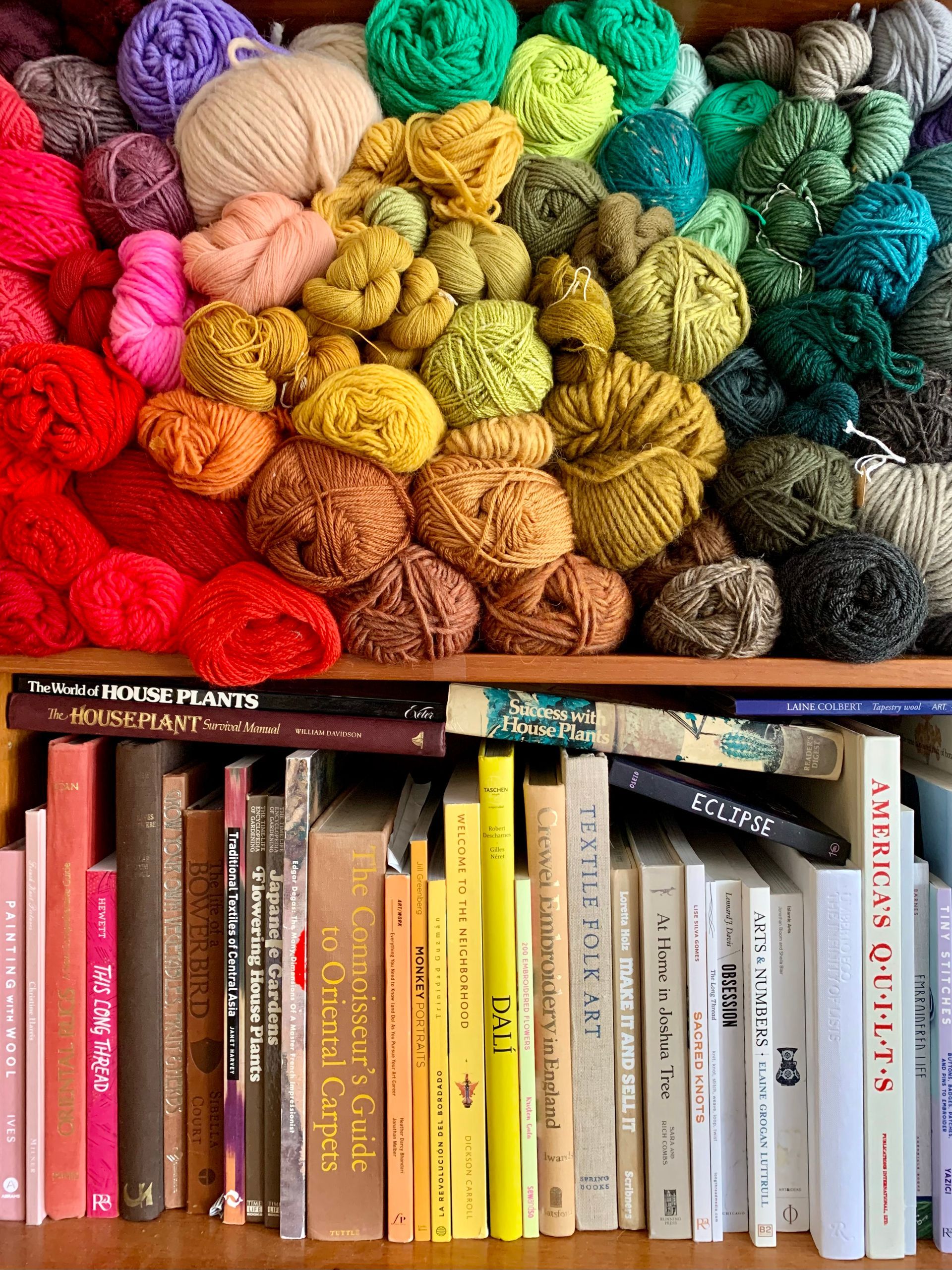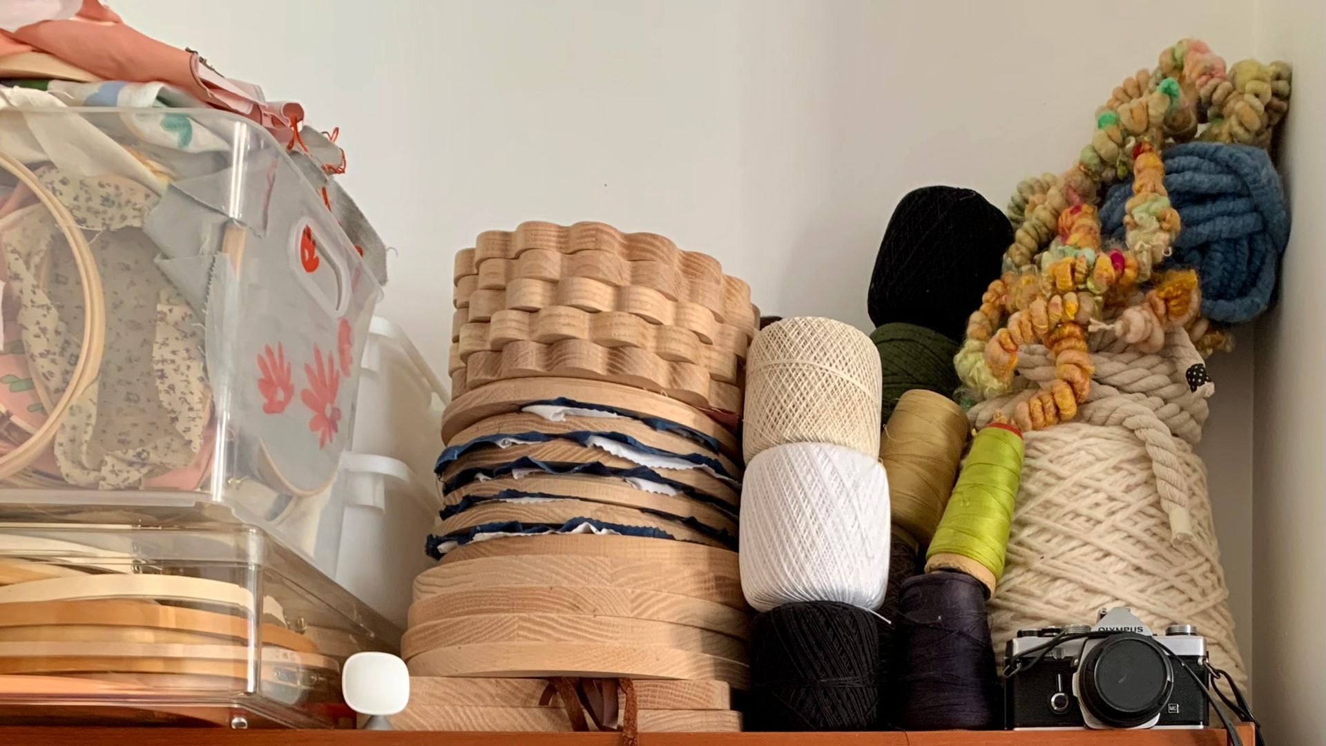 "I believe in layering a space over time. Acquiring things on an as-needed basis and with care and intention, giving a lot of emphasis and preference to secondhand goods, things made by hand, and shopping small. This applies to the studio as well. I purchase a lot of my fabric and fibers secondhand, and prefer to package orders in re-purposed and re-used materials."