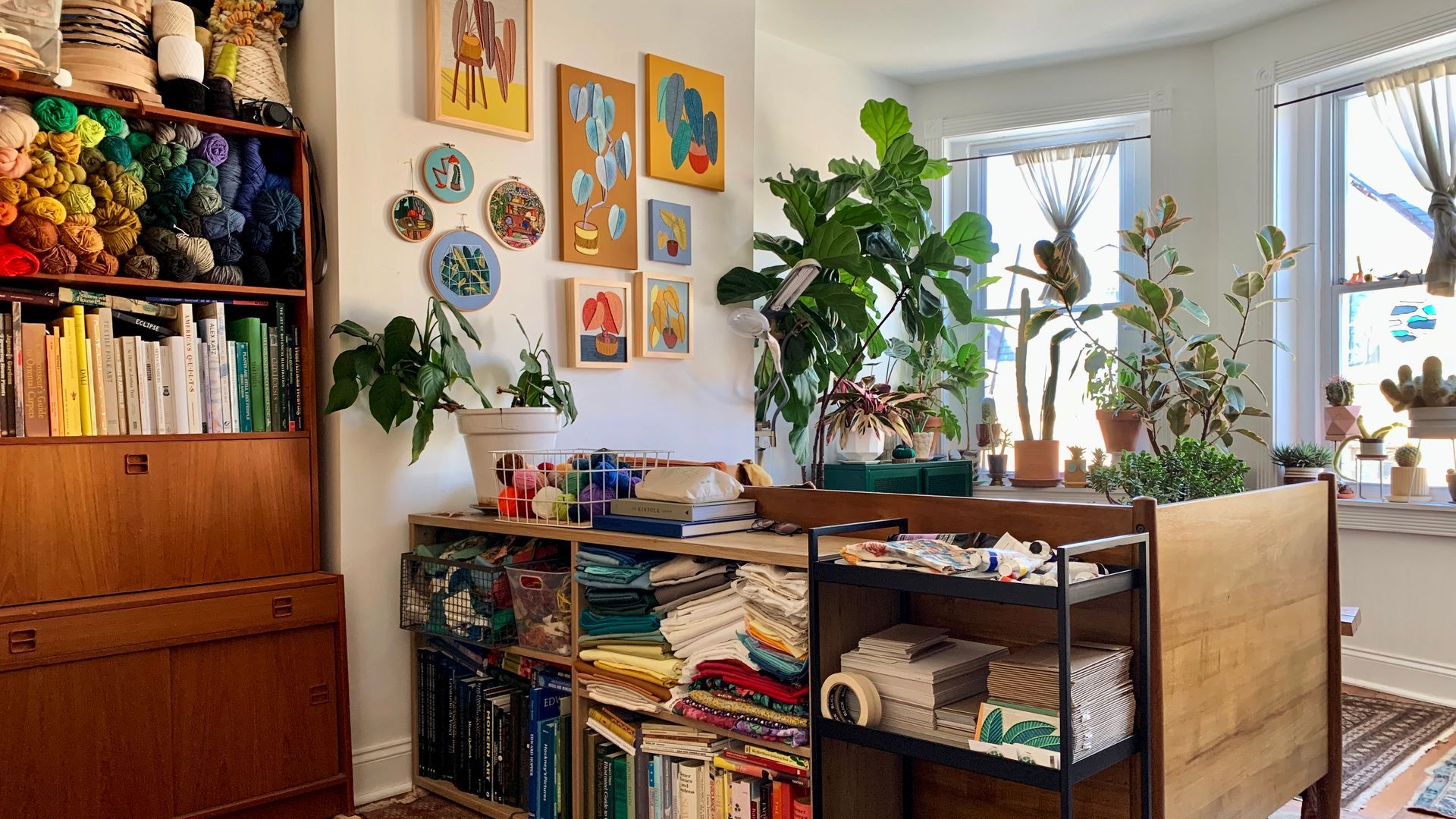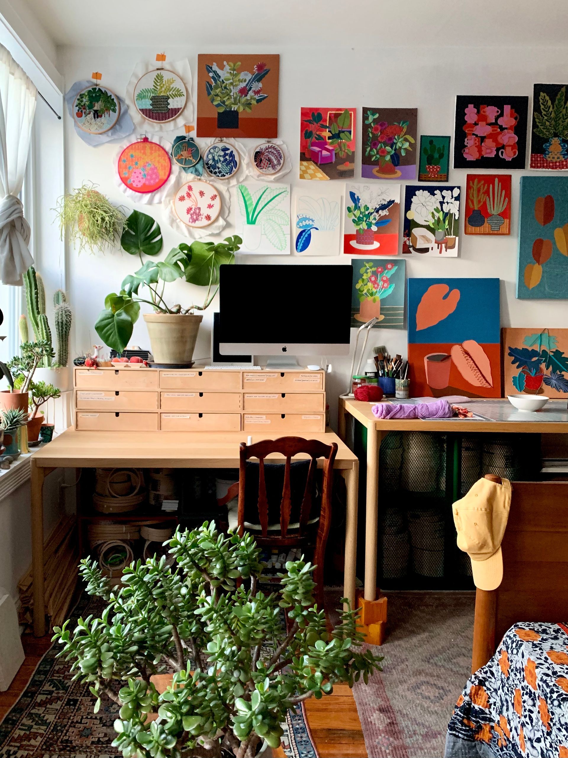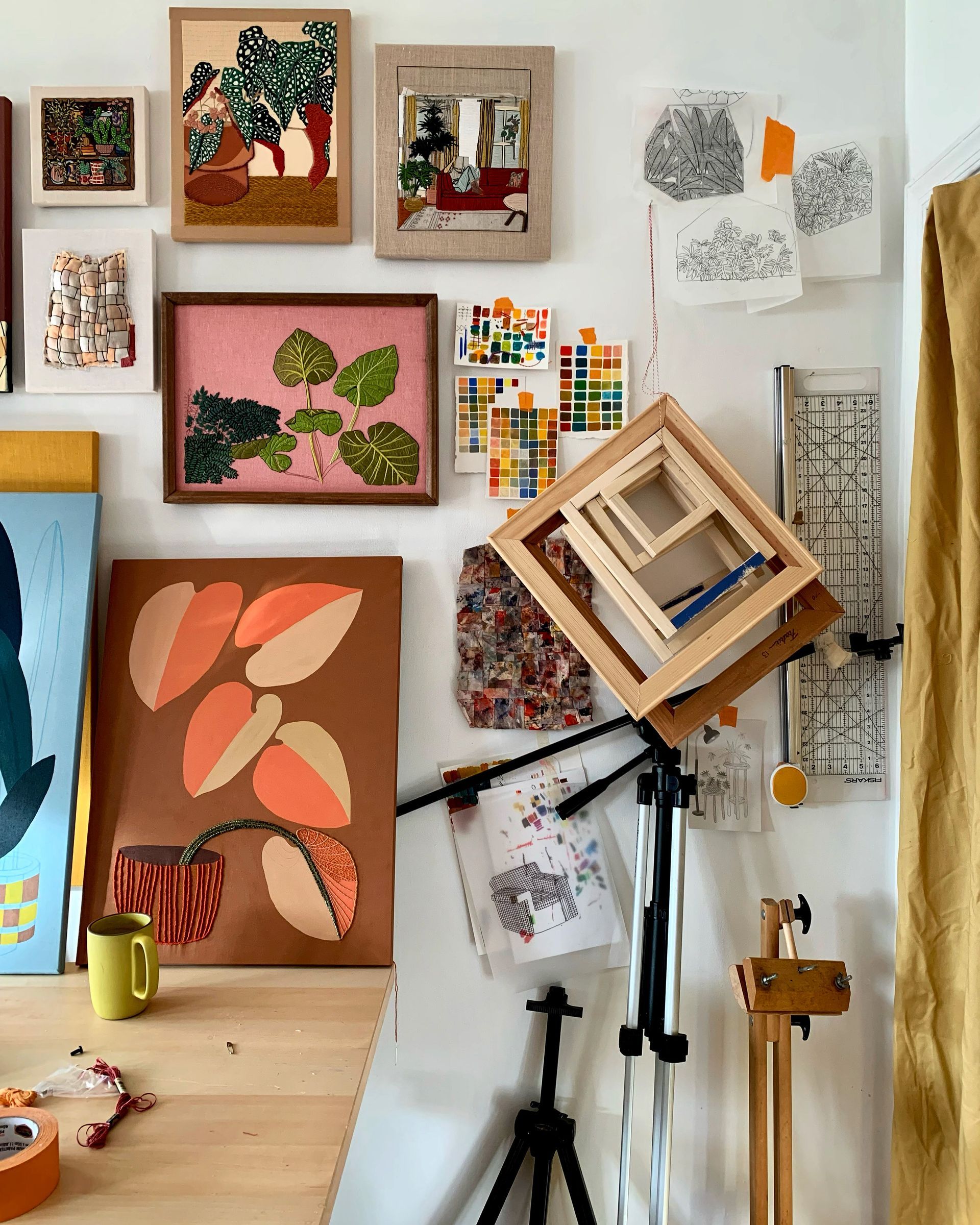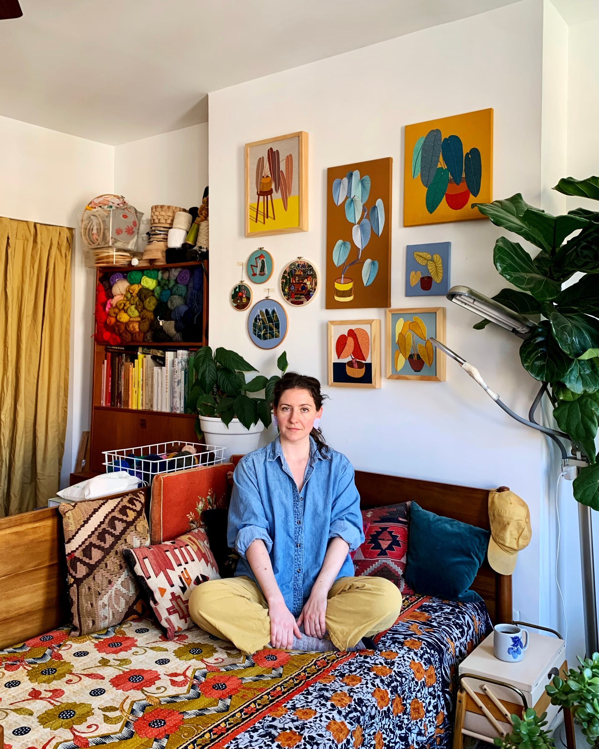 "My home decor style and preferences have been influenced by the imaginary interiors I spent years stitching, and my real physical space, in turn, influences current and future works. I create art that is inspired by Home, both in actual depictions of domestic spaces and objects, and in the concepts of safety and comfort. I want to create work that people want to live with. Work that brings a dose of joy each time it’s looked at. I want to infuse my own home and studio with these feelings too."