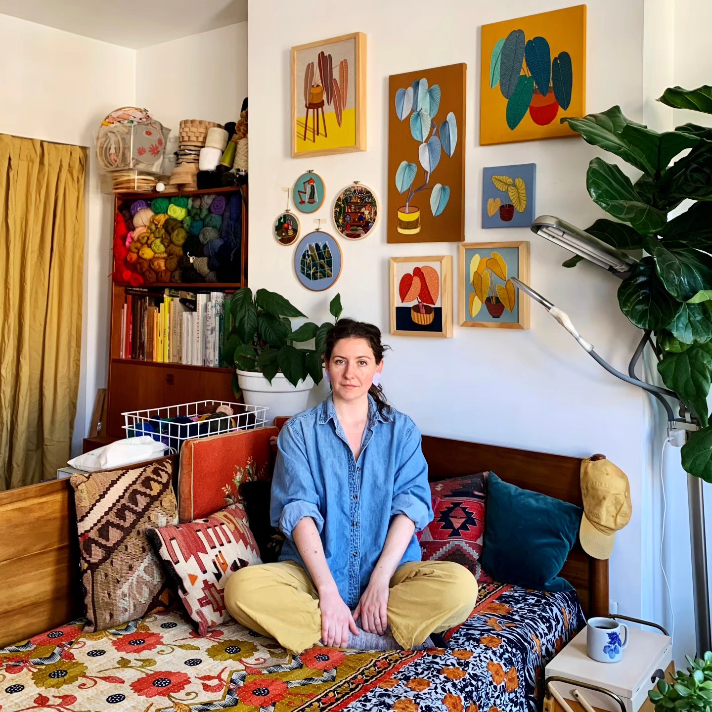 I first saw Sarah's pieces at the Chicago Renegade Market several years ago and loved how she told stories with every stitch. The lush botanical scenes and cozy roomscapes make you want to curl up on the couch with your favorite vinyl softly playing in the background. And can we talk about her use of shadow and light? Gorgeous! 😍😍