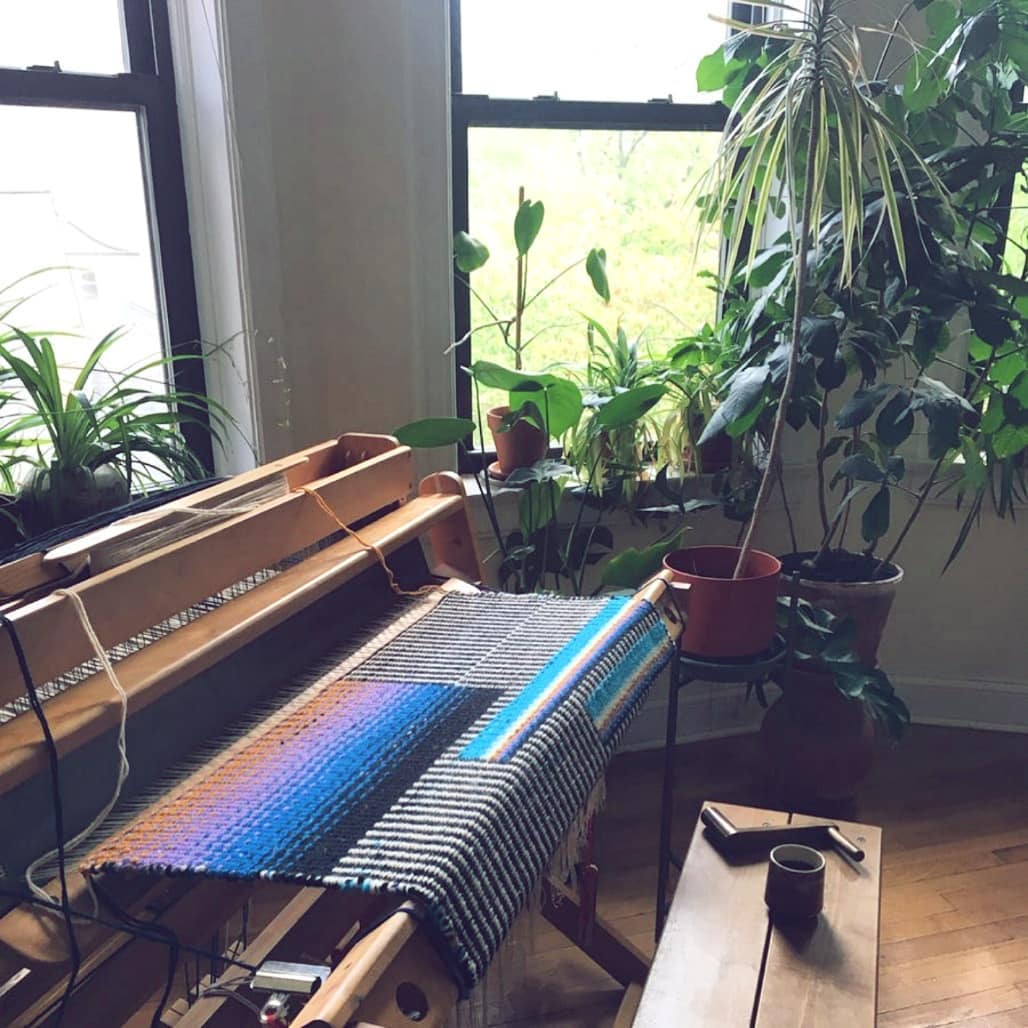 Dreamy photo from the studio of our newest maker, @lattice.textile.studio! 😍 Claire uses her work in mineral physics to inspire her weavings, a perfect combination of left brain and right! See that gorgeous piece on her loom? It's a 5x8 rug heading to the shop in July! Lattice Textile Studio rugs will be available online at Apartment 528 starting next week so get freaking excited! 🎉