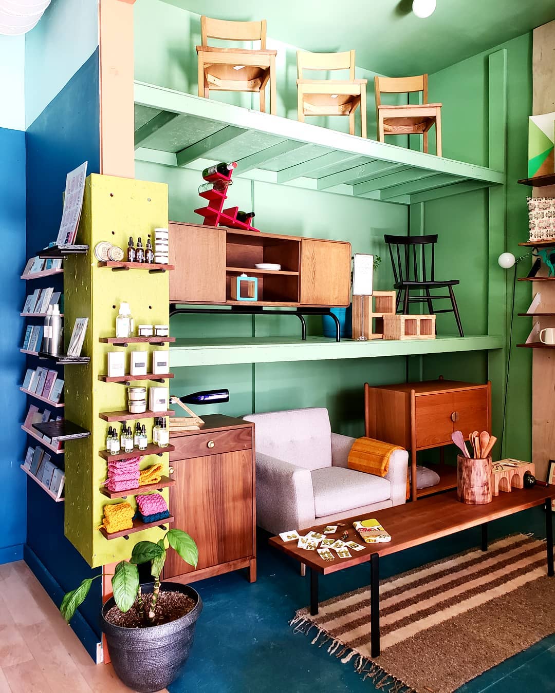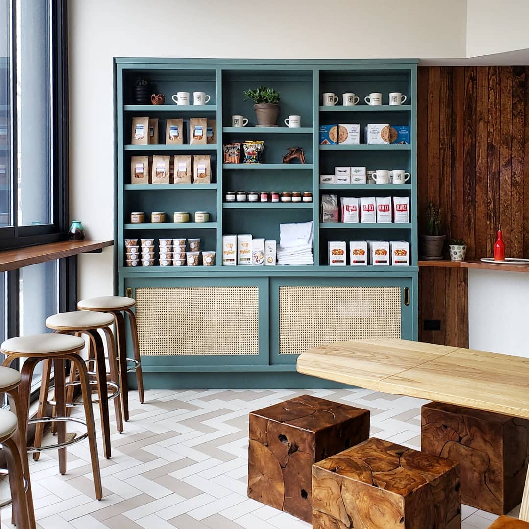 Crushing on the beautiful design at our new neighbors @heybrothersandsisters! I'm a sucker for wood paneling and they have just enough turquoise to satisfy a color lover like me! Oh, and they have delicious food and a huge selection of wine 🍷 Next time you're in the neighborhood, stop by the shop, then hit them up for lunch and a bottle (or 2)!