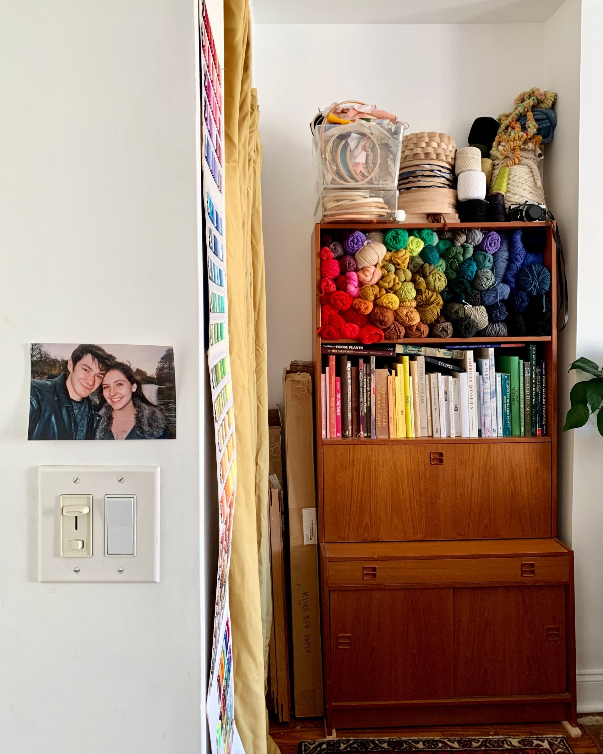 "I believe in layering a space over time. Acquiring things on an as-needed basis and with care and intention, giving a lot of emphasis and preference to secondhand goods, things made by hand, and shopping small. This applies to the studio as well. I purchase a lot of my fabric and fibers secondhand, and prefer to package orders in re-purposed and re-used materials."